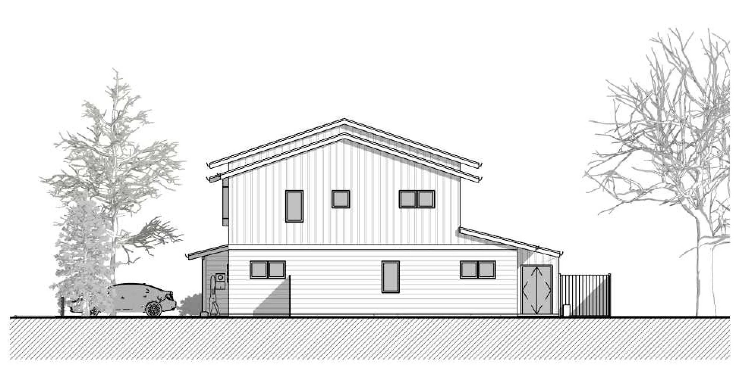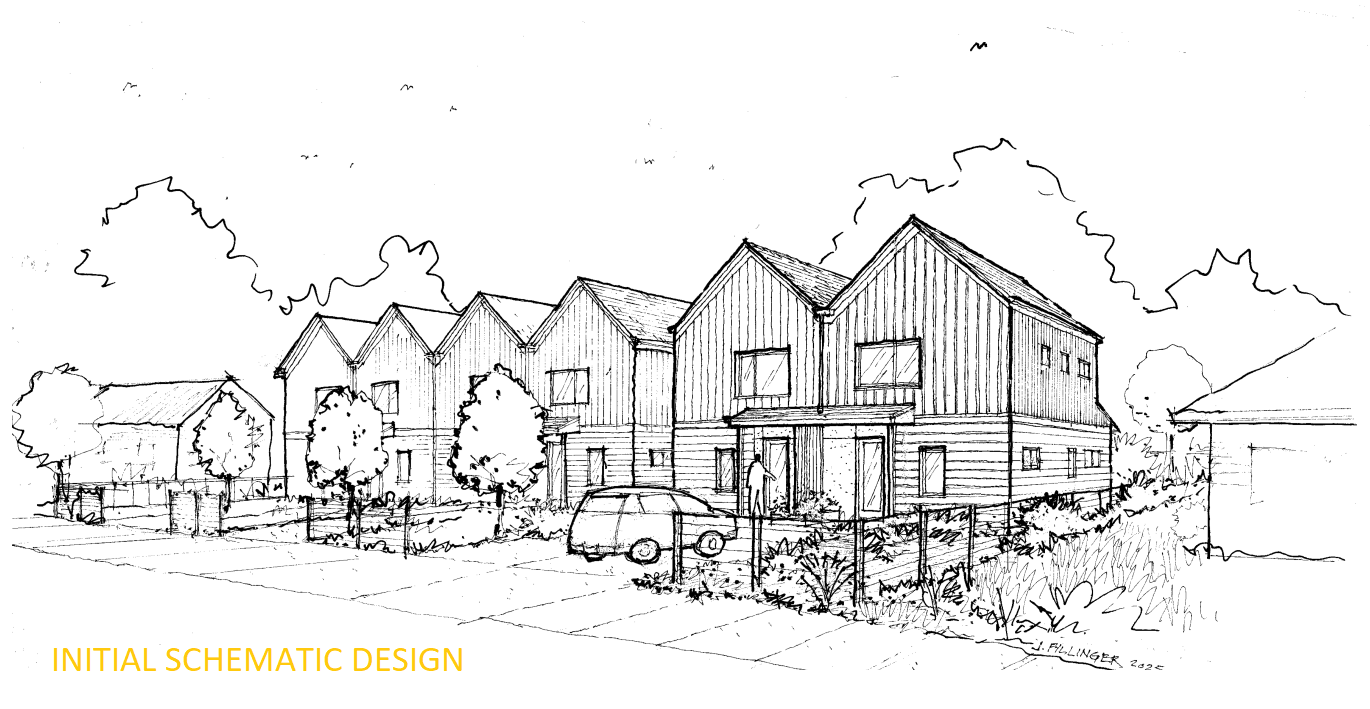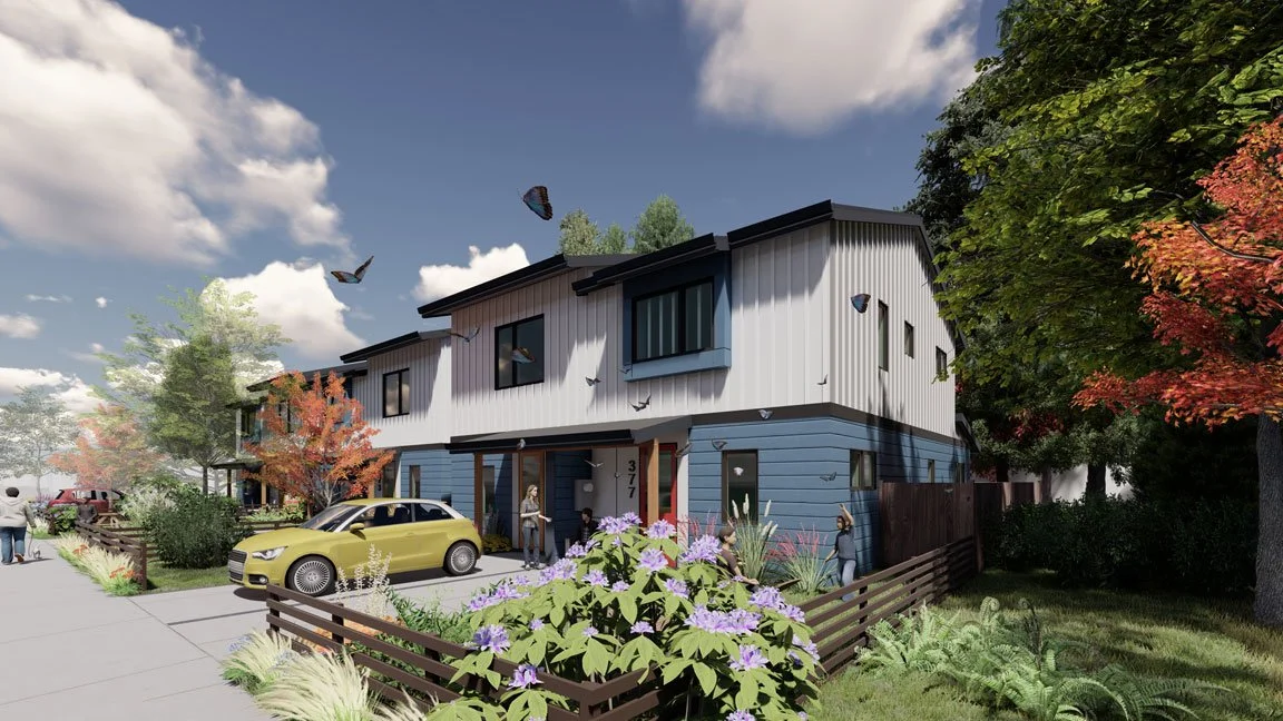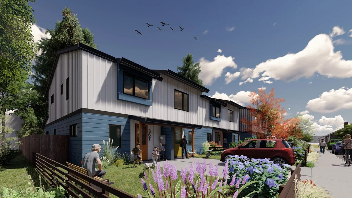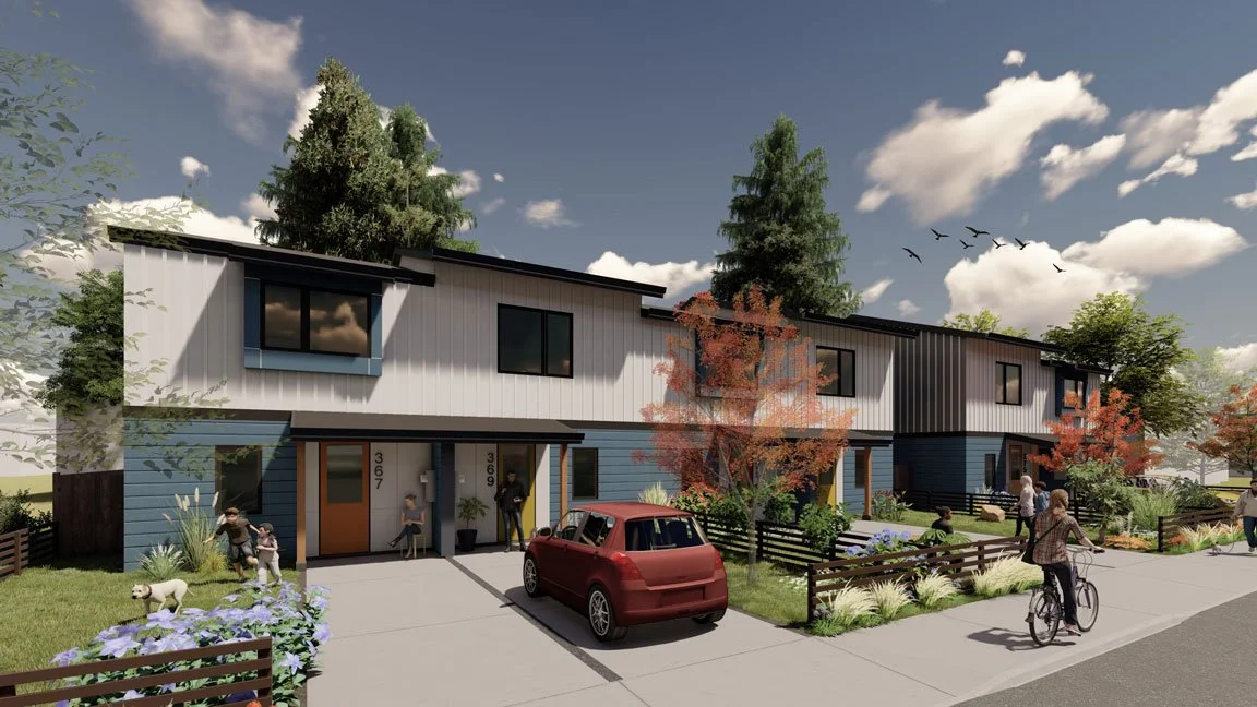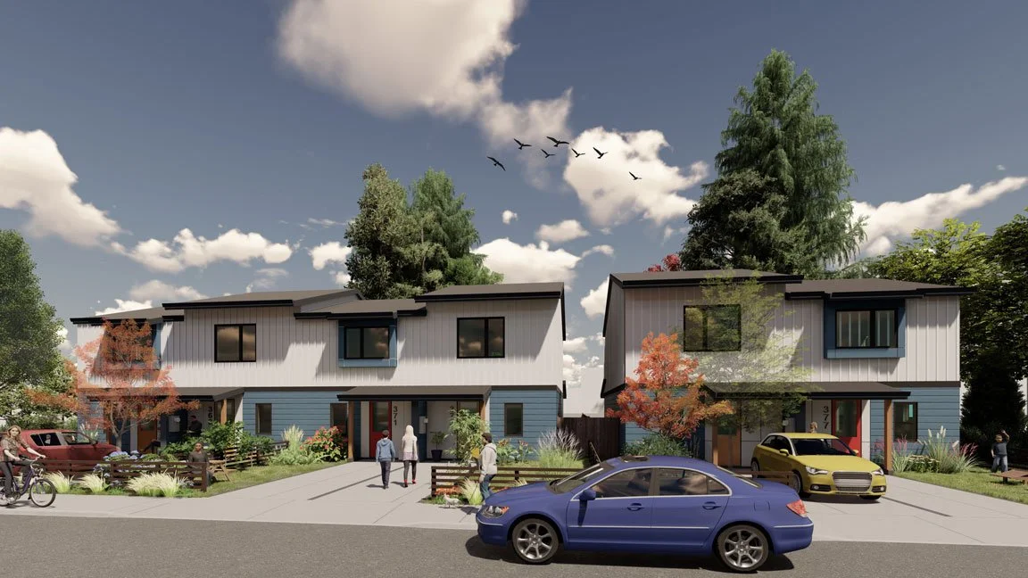 The city of Springfield chose this design for an affordable housing development on the east side of town. Studio.e collaborated with DevNW on the proposal, which includes six residential units on a 1/4-acre site.