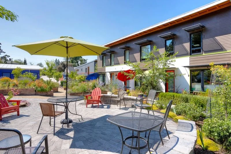 Arcadia puts a priority on sustainability and environmental stewardship. The townhomes, gardens, green-scapes, and plazas incorporate the best in environmentally friendly materials, while each unit is designed to exceed even the highest regulatory standards for energy-efficiency. On average, Arcadia’s townhomes twice exceed Oregon’s strict energy code. Each home is designed for all electric use, creating the opportunity for homeowners to achieve Net-Zero Energy.