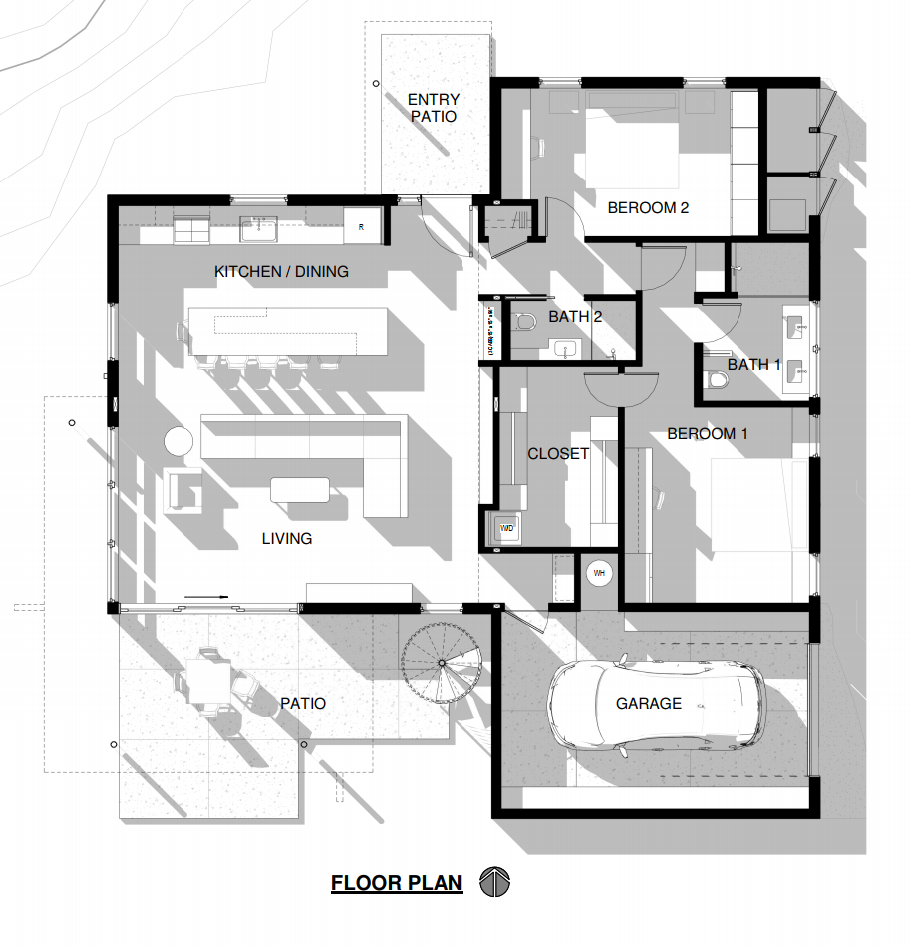 Resiliency, durability, and energy efficiency were important goals for this design of hilltop house. Exterior materials were chosen for durability and low maintenance. Building orientation, sun shading, and window placement were thought out in detail to maximize view and natural daylight while reducing the transfer of unwanted heat. Windows and exterior doors at Hilltop house are highly energy efficient, triple glazed windows with a coating on the South and West sides to reduce the solar heat gain in addition to structural shading. Within the walls of the house a layer of rigid insulation wraps the house breaking the channel of thermal conductivity of the wood framing. In addition, the connection from the floor to the foundation using a unique detail that breaks the heat transfer through the highly conductive concrete.