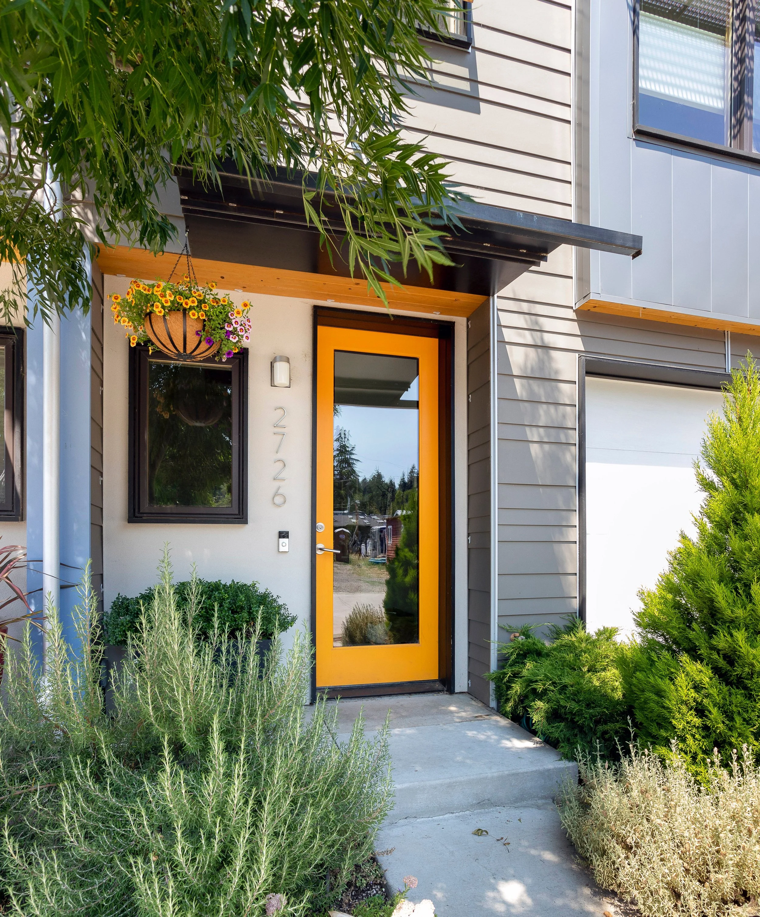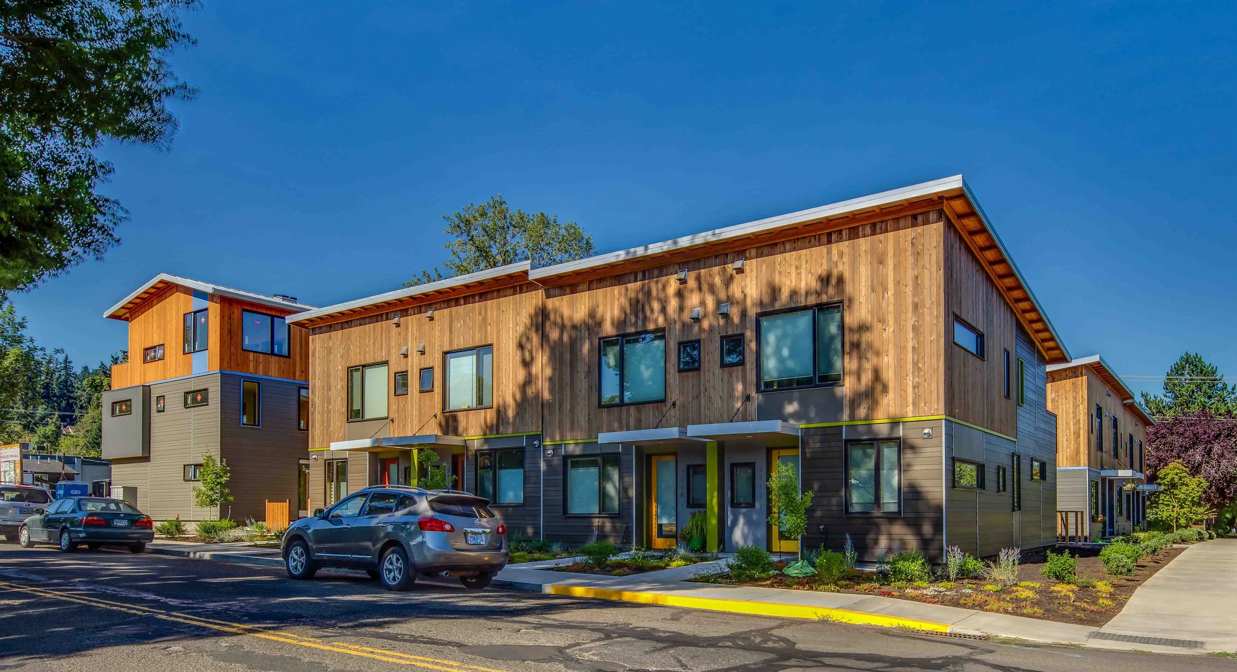 The clean, modern, and warm Northwest Contemporary aesthetic compliments the development’s high-performance constructions methods. Based on the Passive House Standard, the Lucia Townhouses have super-insulated building envelopes, passive solar conditioning, maximized interior daylighting, local, sustainable and recycled materials, and PV ready standing seam metal roofs for solar electricity.