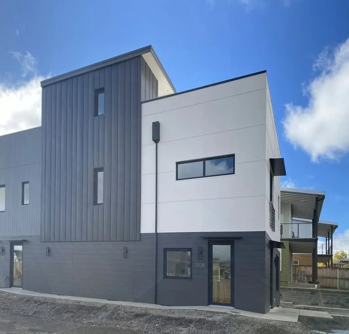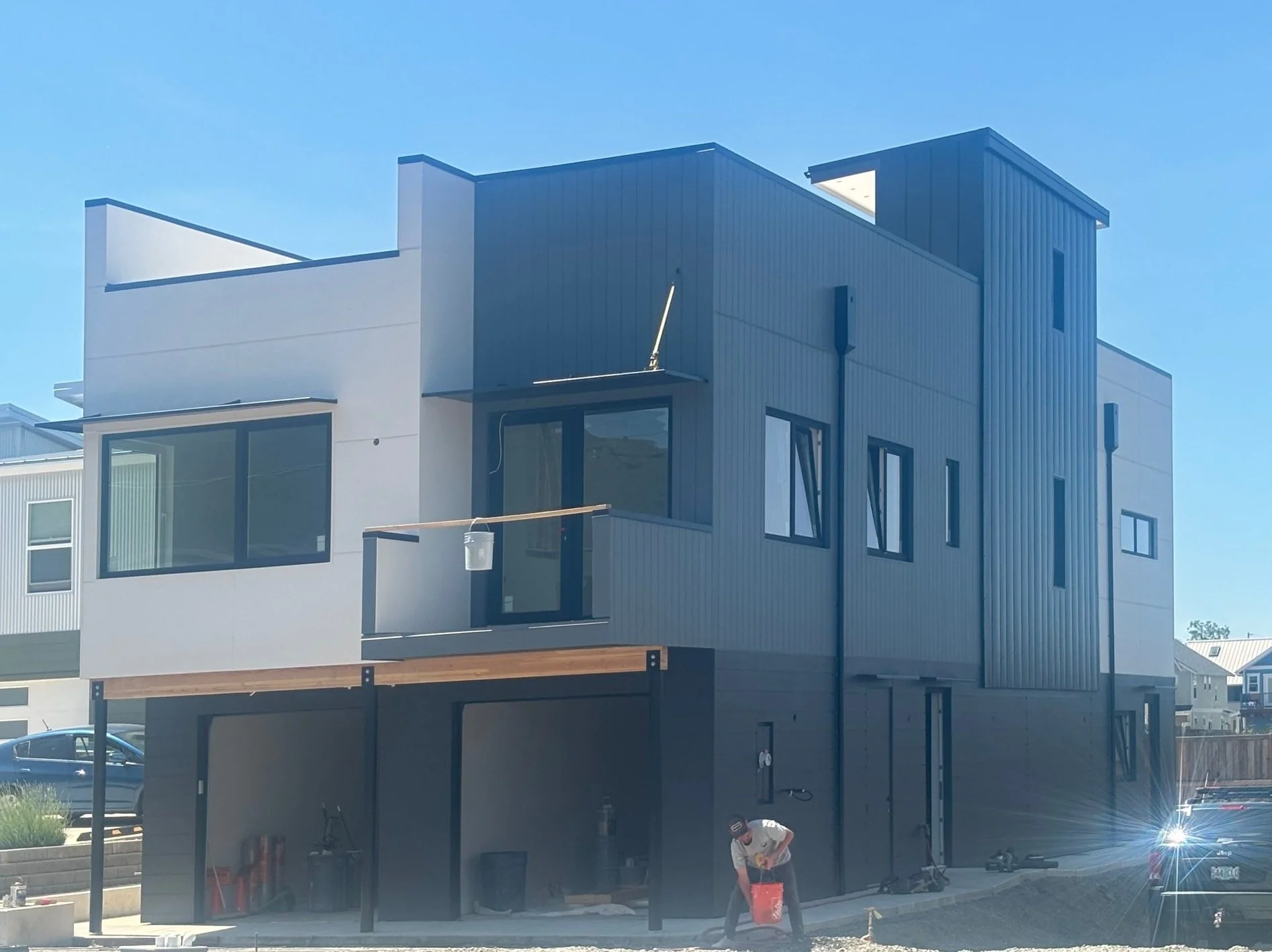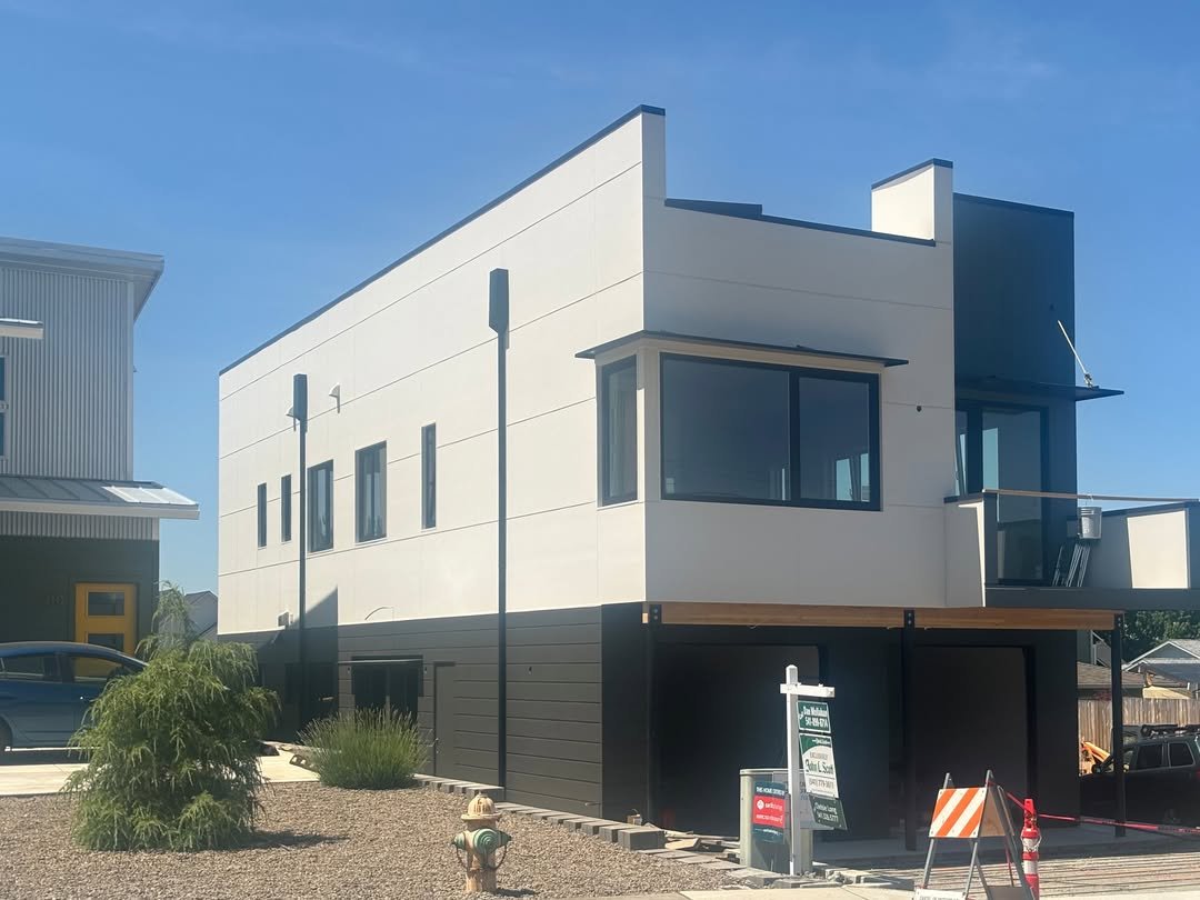 Juliet duplex is a Phius-certified Passive House. Key high-performance features include: a Zehnder HRV to provide fresh, filtered air even during the wildfire smoke season, triple-pane windows and exterior awning shades to temper seasonal fluctuations, and extra insulation. Extra effort was made to use low embodied carbon materials, such as cellulose insulation, a SANC02 Heat Pump Water Heater and concrete made with slag and bio-char. Fiber cement and metal siding, mineral wool exterior insulation and diligent air sealing create a durable and fire-resistant envelope.