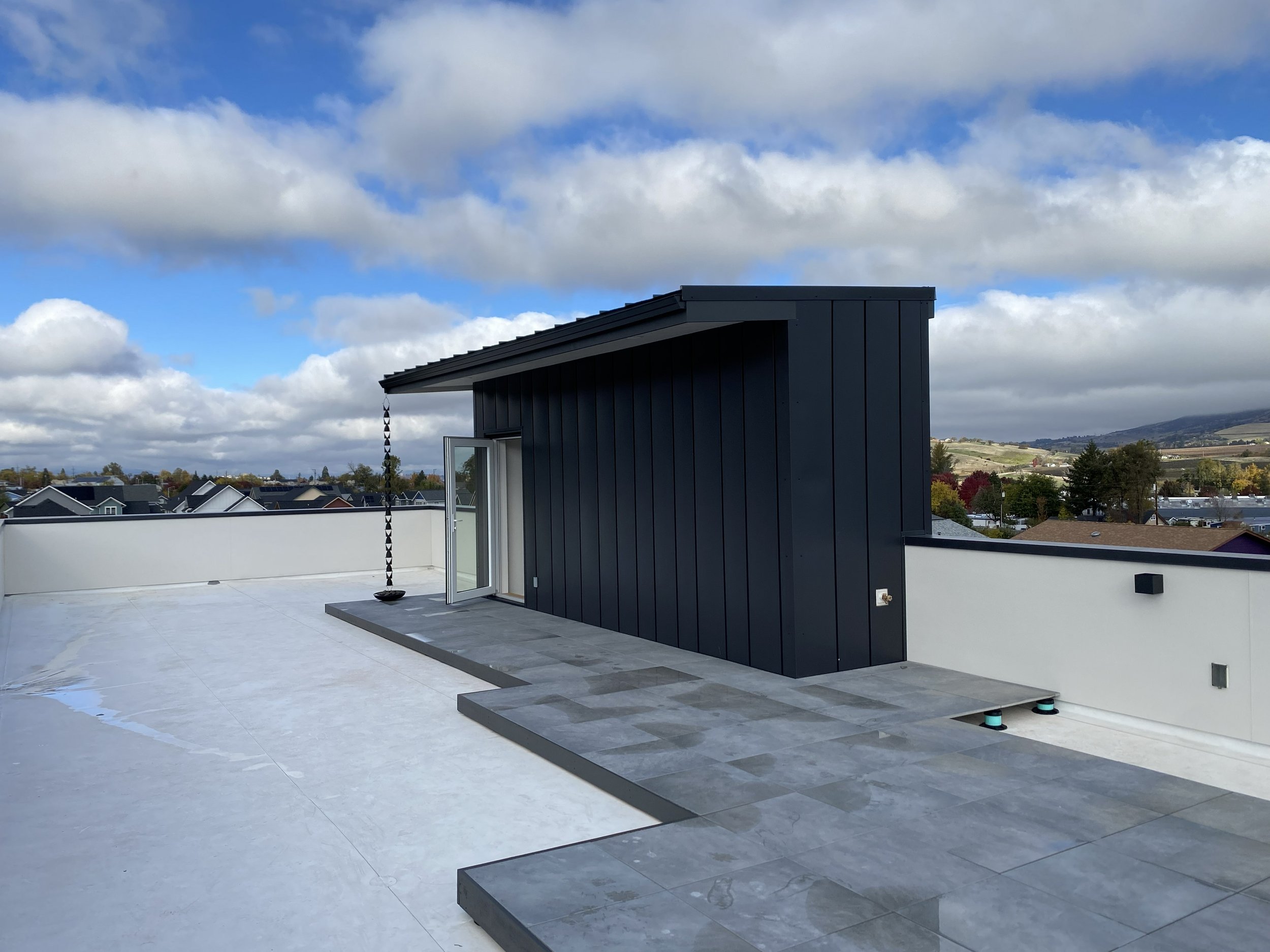 Nestled in the City of Talent’s high-density urban zone, this compact four-unit design provides sustainable and much-needed middle-scale housing to support the community’s Almeda wildfire rebuild efforts. Romeo and Juliet, each a free-standing duplex, share a block with Ashland’s Shakespeare Festival theater, hence the name. Each two-story structure features a one-bedroom ADU and two-car garage on the ground floor and a three-bedroom unit on the second floor, along with a roof terrace to take in the beautiful views of the nearby Ashland Hills.